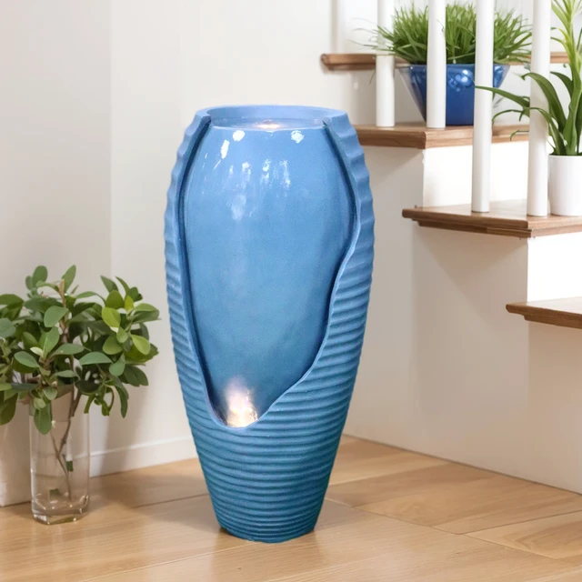 Wholesale Patio Backyard Landscape Garden Waterfall Decor Vase Shape Outdoor Antique Jar Water Fountain With Led Lights