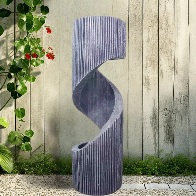 Wholesale Spiral Geometric Shape Freestanding Garden Decor Waterfall Outdoor Water Fountain With Led Lights for Lawn Patio Decor